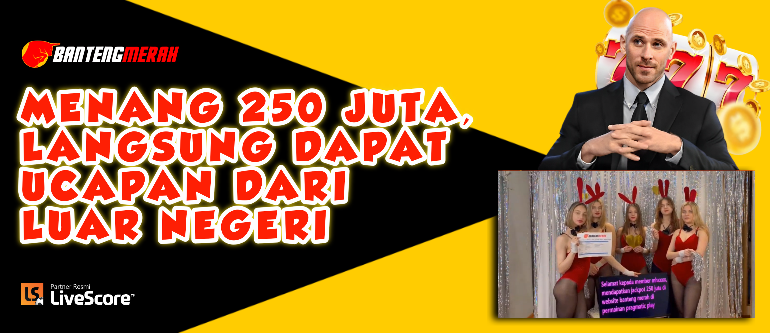 Ucapan tersebut berisi ” Selamat kepada member mhxxxx mendapatkan jackpot 250 Juta di website Bantengmerah dipermainan pragmatic play MUAACHH!!! ” ucap gadis-gadis cantik dari luar negeri kepada member mhxxxx.
